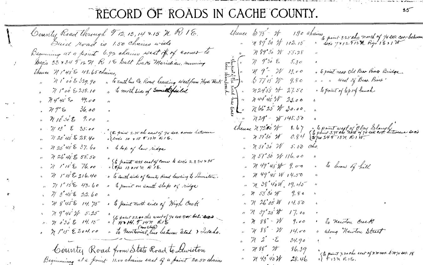 Early Record of Roads - Cache County